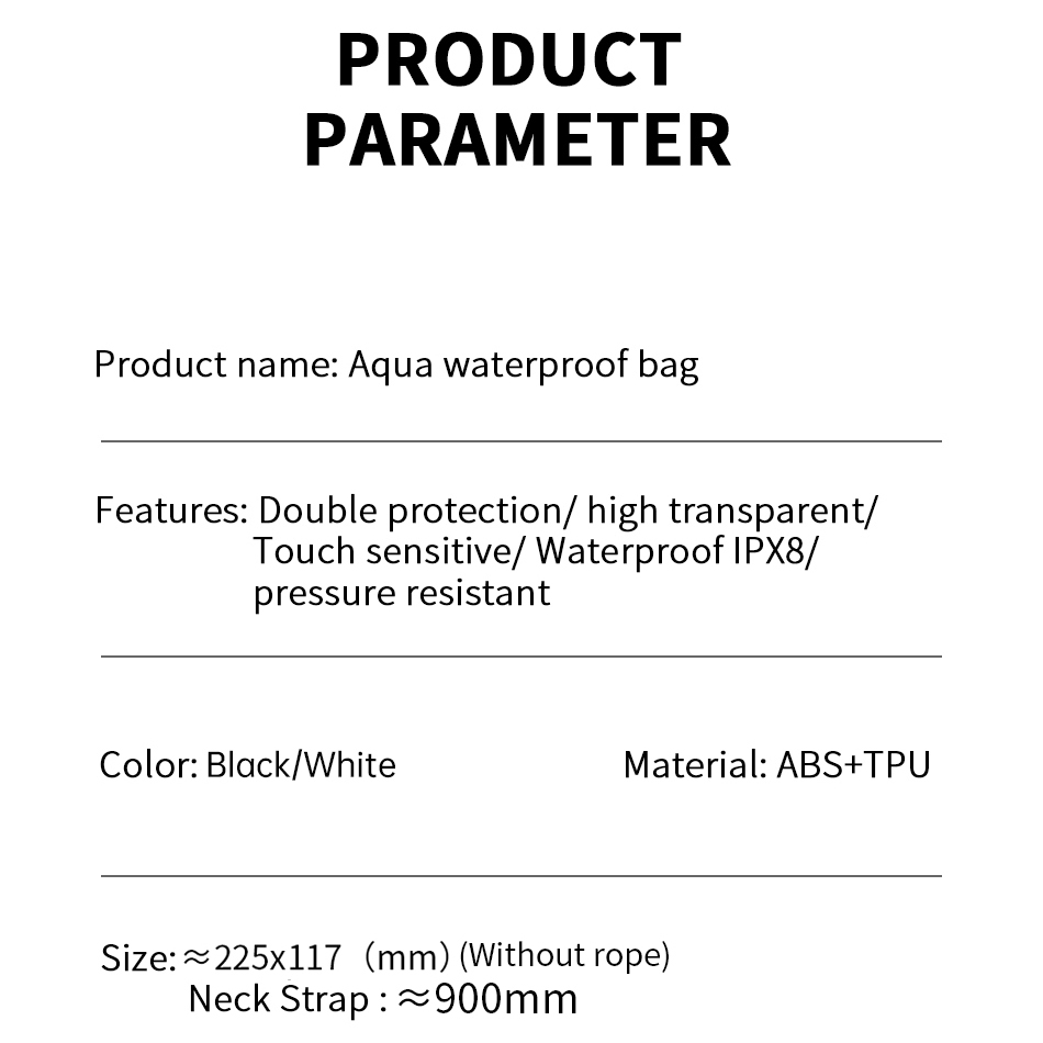 Водонепроникна сумка WIWU Aqua Waterproof Bag поєднує стильний мінімалістичний дизайн із практичністю, що робить її ідеальним аксесуаром для активного відпочинку, зокрема плавання чи подорожей. Виготовлена з міцних матеріалів ABS і TPU, сумка доступна в двох універсальних кольорах – чорному та білому, які виглядають елегантно та сучасно. З компактними розмірами (225x117*11 мм) і легкою вагою вона зручна для транспортування, а регульований ремінець довжиною 460 мм забезпечує комфортне носіння на плечі чи через груди. Прозора передня панель дозволяє використовувати сенсорний екран пристрою, не виймаючи його, а антиковзкий замок додає зручності та безпеки. Цей стильний і функціональний аксесуар ідеально підходить для захисту ваших речей у будь-яких умовах.