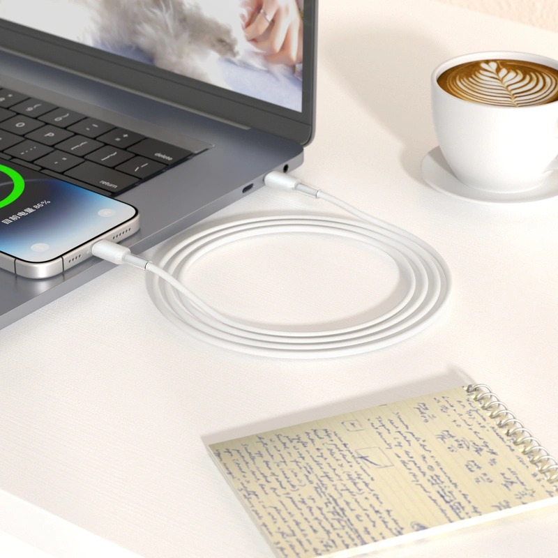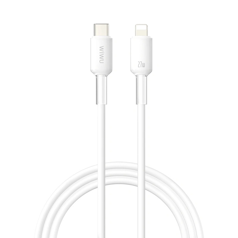 • ТехнологіїWi-C062 — це кабель USB-C → Lightning, оптимізований для пристроїв Apple, і підтримує швидку зарядку потужністю до 27 Вт, що забезпечує швидке підживлення iPhone чи iPad через PD. Крім зарядки, кабель дозволяє передавати дані із швидкістю до 480 Мб/с — цього достатньо для синхронізації, резервного копіювання або передачі фото, відео та інших файлів. Надійний корпус з liquid-силікону не лише захищає провід від пошкоджень, але й робить його гнучким і стійким до частого згинання та скручування.