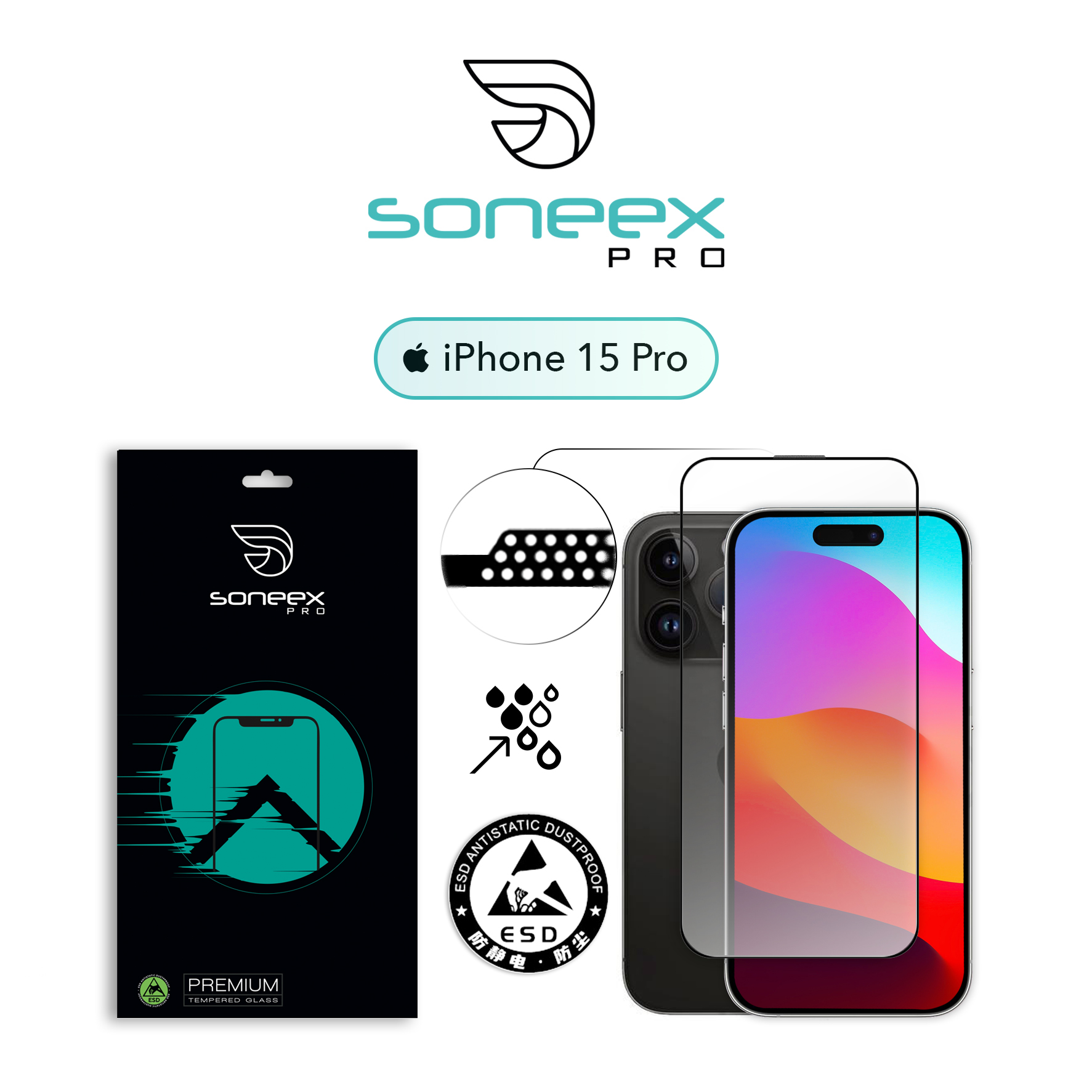 Захисне скло Soneex Pro для iPhone 15 Pro 2.5D Full Screen